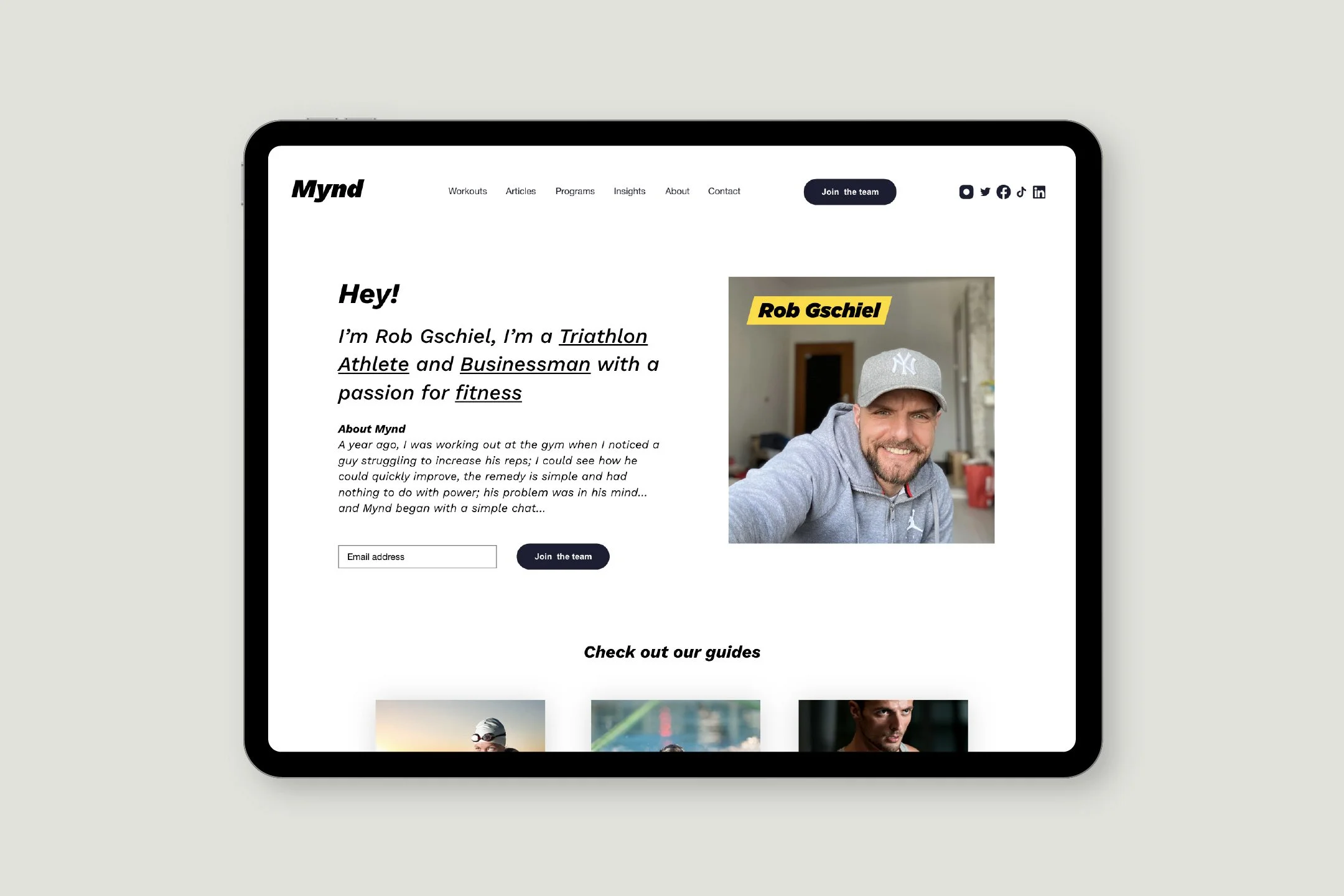 We started with strategy: audience, positioning, naming. “The Athlete’s Mind” was heartfelt, but too long and too forgettable. Through exploration and conversation, we landed on something much sharper: Mynd , we asked him how it was he could push through, he said it’s all in my mind, so we came up Mynd, it was a name that was distinctive, ownable, and rich with meaning. Part declaration (my mind), part philosophy (mind over matter), part brand.